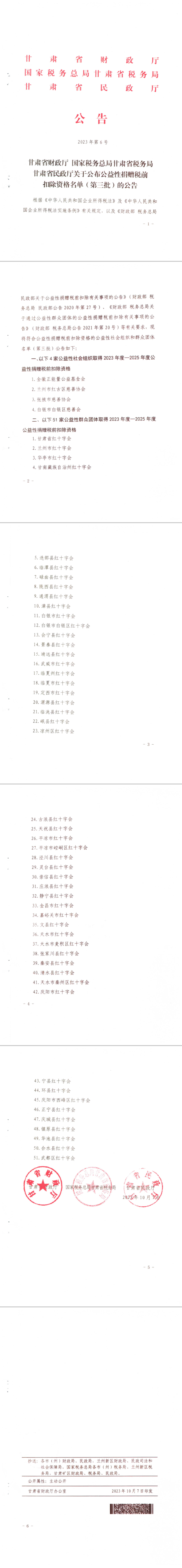 轉(zhuǎn)載|甘肅省財政廳 國家稅務總局甘肅省稅務局甘肅省民政廳關(guān)于公布公益性捐贈稅前扣除資格名單(第三批)的公告